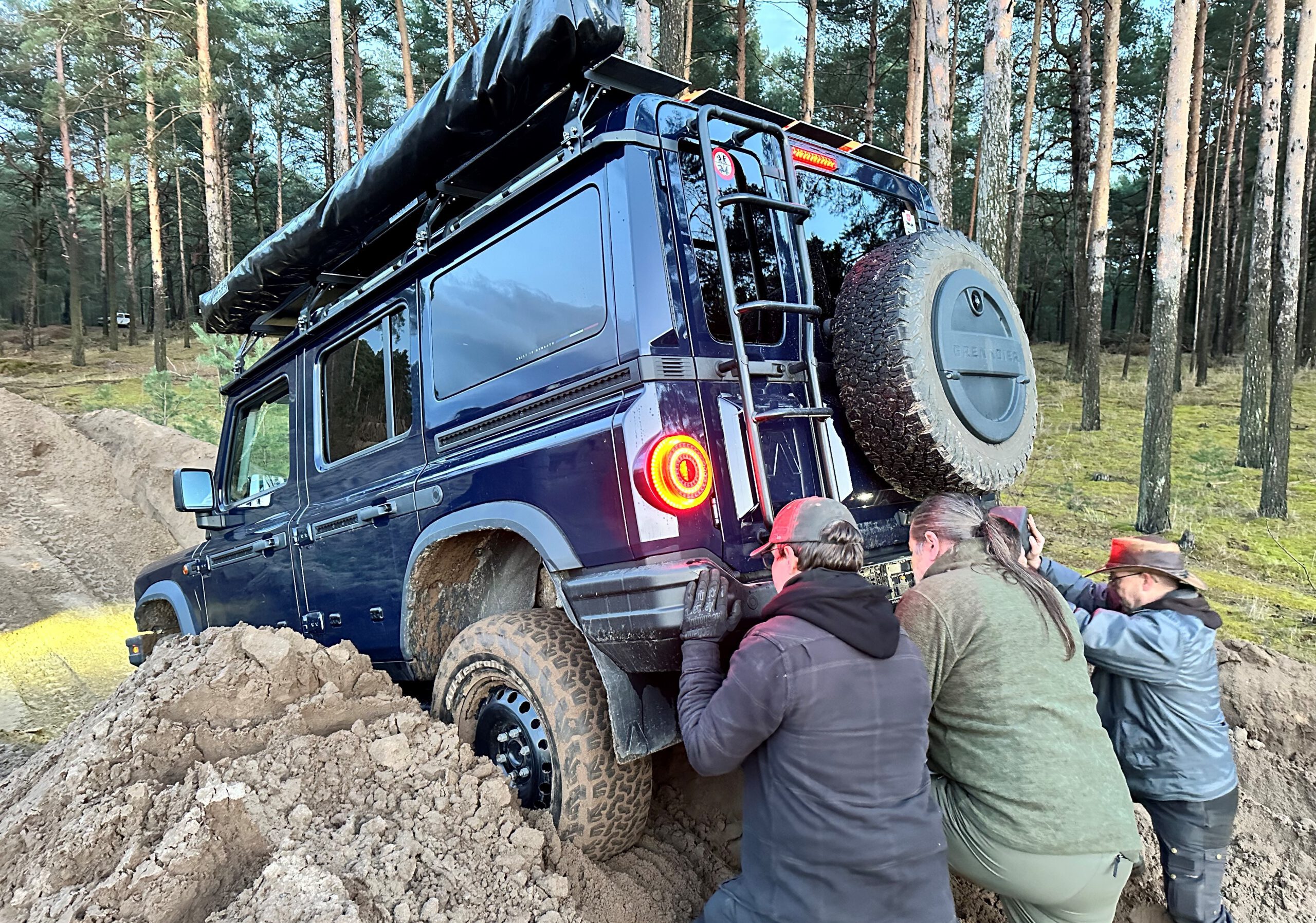 Dieses Offroad Training ist so aufwendig organisiert, dass wir sogar eines unserer Organisations-Fahrzeuge im Gelände bewusst zum Umkippen bringen, um den Teilnehmern zu erläutern, wie man im Falle eines Falles einen umgekippten Geländewagen wieder richtig auf die Beine stellt. Hierdurch und durch viele weitere, ausgefallene Trainingsinhalte geht dieses Offroad-Training weit über das Übliche hinaus.