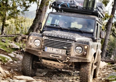 Wie aus einer Gießkanne läuft das Flusswasser aus allen Fugen und Ritzen des Unterbodens ab. Schon durchqueren die nächsten Geländewagen den Fluss und weiter geht die Fahrt. Die Reifen graben sich durch knietiefen Morast, umgestürzte Bäume werden in Teamarbeit aus dem Weg geräumt und die Bergegurte werden erst gar nicht wieder zusammengerollt … echtes Offroad-Working pur!